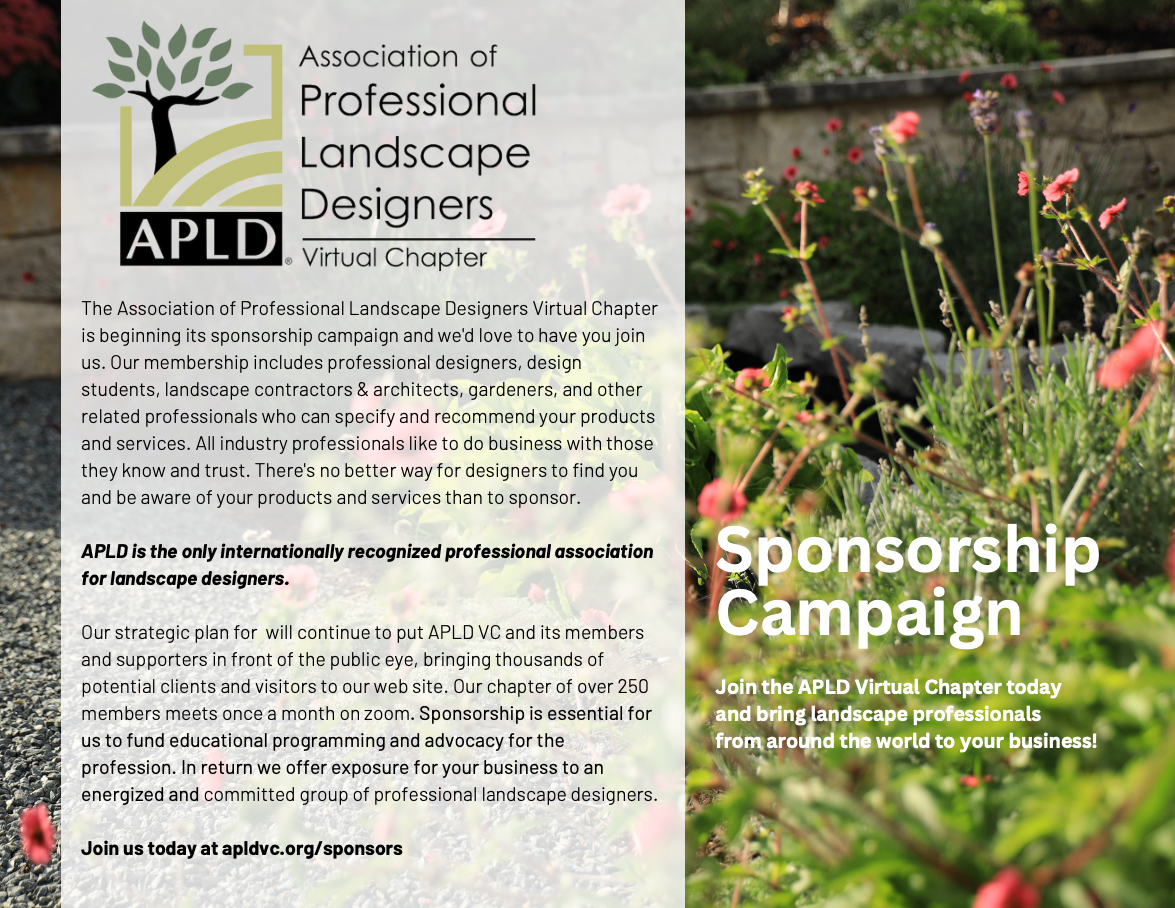 Get your business or organization in front of the hundreds of active and engaged APLD members across North America and the globe who are looking for quality resources and products to use in their designs.